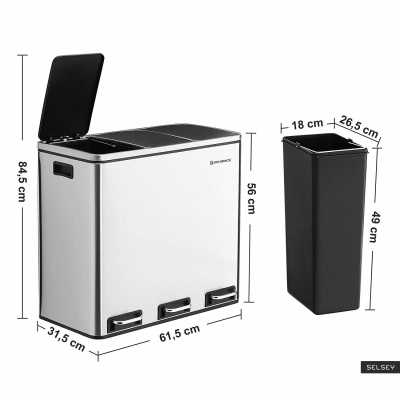 - Material: stainless steel, PP plastic inner container capacity 3 x 18 l , 54 litres